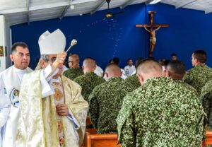 Monseñor Homenaje a los policías caídos en Amalfi: Monseñor José Roberto Ospina presidió eucaristía de exequias